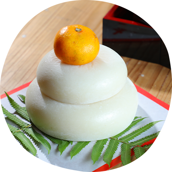 鏡餅の形が丸いのは”魂の象徴”であるからとされており、大小2段に重ねた餅は”月”と”太陽”を表し、円満に年を重ねるという意味や、幸福と財産が重なって縁起が良いとの意味が込められております。